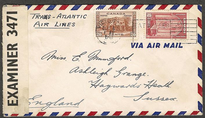 To complete its journey from Victoria to England in December 1940, this cover would have been flown by five different